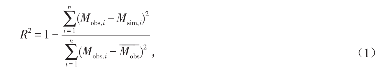 ①模型调参采用Nash-Stucliffe效率系数(NSE)计算公式,具体公式为: